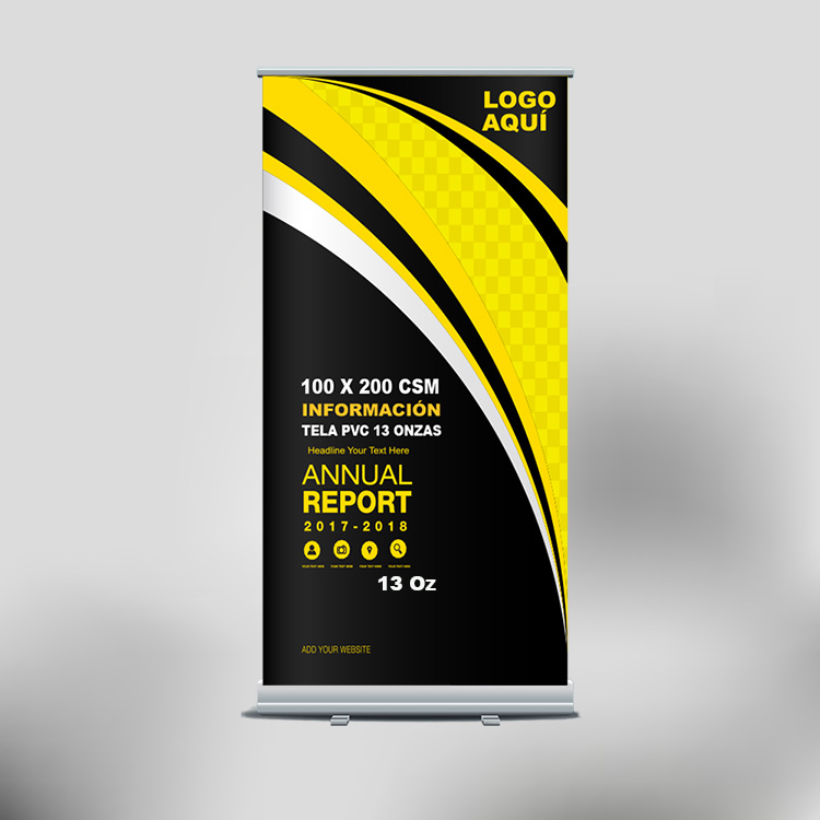 “Nuestro pendón roller con impresión en papel sintético y soporte de aluminio es la opción ideal para quienes buscan una solución publicitaria resistente, ligera y de alta calidad. La impresión en papel sintético ofrece una excelente definición y colores vibrantes, garantizando que tu mensaje se vea claro y atractivo en cualquier entorno. Este material es más duradero y resistente al agua que el papel tradicional, lo que lo hace perfecto para uso en interiores y exteriores. El soporte de aluminio, ligero y robusto, asegura una estructura estable y fácil de montar y desmontar, ideal para eventos, exposiciones, tiendas o cualquier actividad promocional. Con su diseño moderno y funcional, este pendón roller es una herramienta eficaz para destacar tu marca de manera profesional y llamativa.”